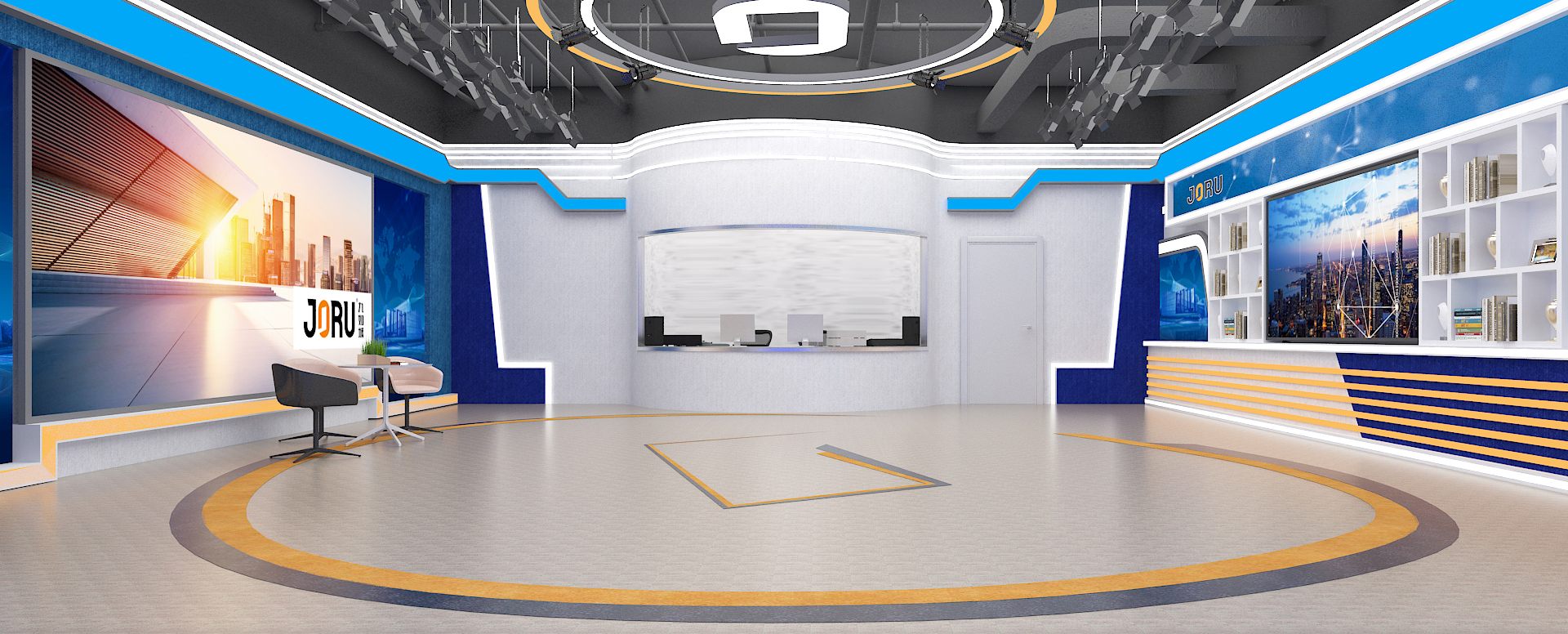 老子有钱lzyq88演播室工程专业设计内容分为:实景演播区、虚拟演播区、控制室、录音室、化妆间、演播室灯光、声学舞美、演播设备配套等几个方面。