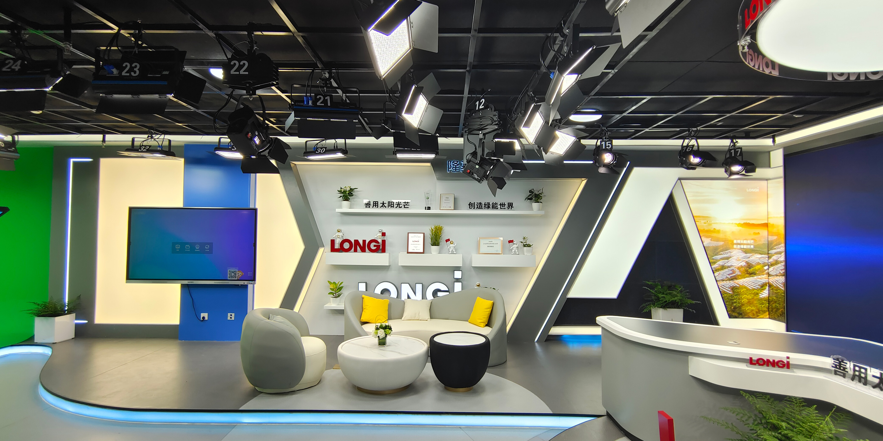 开放式演播室整体无缝隙全置景,每个景区都能满足多种播报形式,景区间既可以根据节目需求单独取景也可以相互组合取景,为节目录制提供了更多灵活变化的可能性。